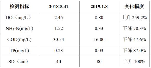 2)水質(zhì)由Ⅴ類水達到Ⅲ類水(除COD外其余指標(biāo)均達Ⅱ類及以上),各項水質(zhì)指標(biāo)得到顯著提升。LGe新型光催化網(wǎng)_水庫治理_河道治理_水生態(tài)修復(fù)_水環(huán)境治理與修復(fù)_江蘇雙良環(huán)境科技有限公司