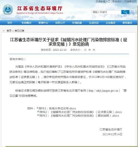 1. 江蘇省征求《城鎮(zhèn)污水處理廠污染物排放標(biāo)準(zhǔn)》意見!