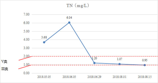 總結(jié)分析:該治理區(qū)域采用光催化技術(shù),在短時(shí)間內(nèi)迅速提升水質(zhì)。經(jīng)過(guò)3個(gè)月的治理之后,根據(jù)第三方數(shù)據(jù)顯示,期間6月5日指標(biāo)有所變差,原因?yàn)檫M(jìn)入雨季,暴雨之后雨水?dāng)y帶污染物徑流至治理區(qū)域,出雨季后,指標(biāo)穩(wěn)步好轉(zhuǎn)。治理區(qū)域圍隔內(nèi)透明度及觀感明顯好于治理區(qū)圍隔外。長(zhǎng)興湖治理區(qū)域現(xiàn)已達(dá)到要求的IV類水標(biāo)準(zhǔn),治理效果顯著。EVk新型光催化網(wǎng)_水庫(kù)治理_河道治理_水生態(tài)修復(fù)_水環(huán)境治理與修復(fù)_江蘇雙良環(huán)境科技有限公司