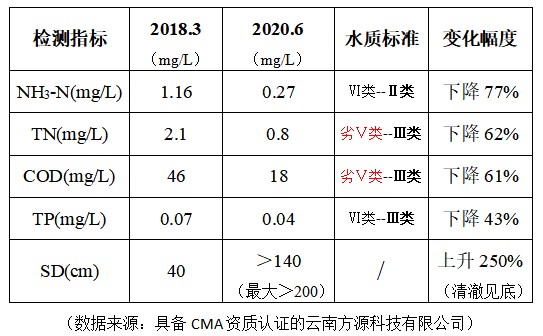 經(jīng)2018年5月至2020年5月兩年的治理及維護,水生態(tài)系統(tǒng)健康穩(wěn)定發(fā)展。示范區(qū)內(nèi)水質(zhì)提升至III類水并維持穩(wěn)定達1年以上,“新型光催化技術(shù)”利用科技與自然共力,短期內(nèi)改善水質(zhì)指標,中長期生態(tài)恢復(fù)自愈自潔,真正實現(xiàn)清水穩(wěn)態(tài)。洱源西湖項目無論是水質(zhì)還是水生態(tài)都達到并超過設(shè)定的目標和考核指標。Elg新型光催化網(wǎng)_水庫治理_河道治理_水生態(tài)修復(fù)_水環(huán)境治理與修復(fù)_江蘇雙良環(huán)境科技有限公司