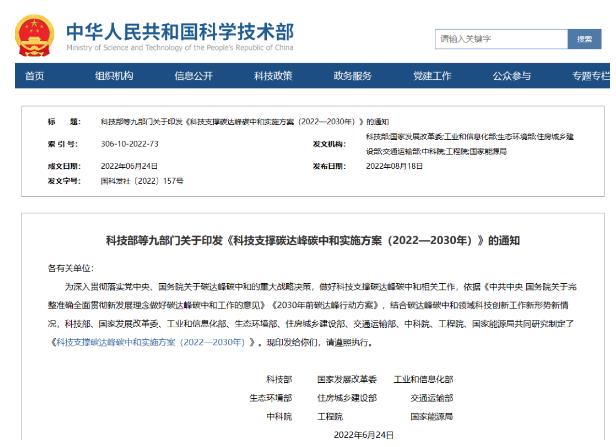 02科技部等九部門(mén)關(guān)于印發(fā)《科技支撐碳達(dá)峰碳中和實(shí)施方案(2022—2030年)》的通知
