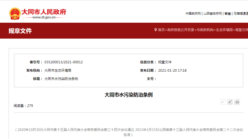 大同市第十五屆人民代表大會(huì)常務(wù)委員會(huì)第三十四次會(huì)議于2020年10月30日通過,山西省第十三屆人民代表大會(huì)常務(wù)委員會(huì)第二十二次會(huì)議于2021年1月15日批準(zhǔn),自2021年5月1日起施行。RDQ新型光催化網(wǎng)_水庫(kù)治理_河道治理_水生態(tài)修復(fù)_水環(huán)境治理與修復(fù)_江蘇雙良環(huán)境科技有限公司