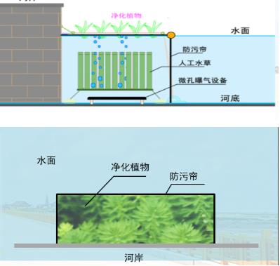 河道底部設(shè)置曝氣系統(tǒng),為立體浮床填料營造條件,凈化水質(zhì)。n1A新型光催化網(wǎng)_水庫治理_河道治理_水生態(tài)修復(fù)_水環(huán)境治理與修復(fù)_江蘇雙良環(huán)境科技有限公司