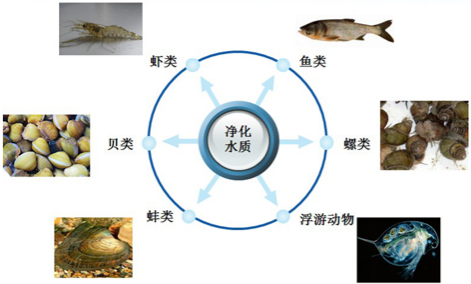 水生動物配置:投放濾食性魚、蝦、蟹、貝類、浮游動物等,調(diào)控水生動物數(shù)量、物種配比。UWX新型光催化網(wǎng)_水庫治理_河道治理_水生態(tài)修復_水環(huán)境治理與修復_江蘇雙良環(huán)境科技有限公司