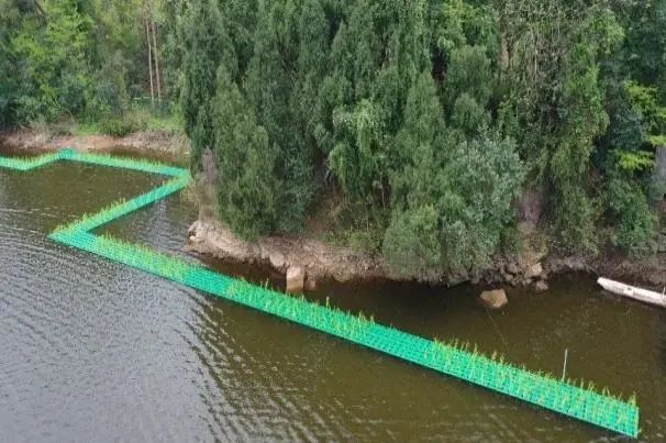 種植植物:在浮體上種植浮水植物,如圓幣草、聚草等。水生植物下方懸掛納米改性碳素纖維。UWX新型光催化網(wǎng)_水庫治理_河道治理_水生態(tài)修復_水環(huán)境治理與修復_江蘇雙良環(huán)境科技有限公司