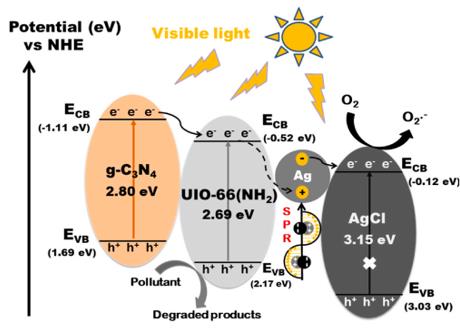 引自:Fabrication of heterostructured Ag/AgCl@g-C3N4@UIO-66(NH2)Ka2新型光催化網(wǎng)_水庫治理_河道治理_水生態(tài)修復(fù)_水環(huán)境治理與修復(fù)_江蘇雙良環(huán)境科技有限公司