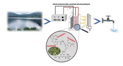 本項(xiàng)研究提出了對光電化學(xué)反應(yīng)器同時(shí)降解有機(jī)微污染物(OMCs)和使真實(shí)地表水中的細(xì)菌失活的性能的評估。目標(biāo)有機(jī)微生物為特布汀、氯芬磷和雙氯芬酸(各500 µg L-1),模型菌為大腸桿菌 k12(106cfu mL-1)。該反應(yīng)器使用了一個(gè)由兩個(gè)鈦網(wǎng)電極組成的光陽極,通過陽極氧化,在表面形成自組裝的整齊的二氧化鈦納米管。研究了兩種陰極材料,即Pt和碳?xì)帧k娀瘜W(xué)輔助光催化(EAP)觀察到較高的大腸桿菌滅活率,鉑CE的還原值(LRV)和碳?xì)株帢O在2小時(shí)內(nèi)的2.7-LRV,而光催化的只有0.8 LRV(開放)電路。采用炭氈陰極和外加電位在90min 內(nèi)實(shí)現(xiàn)了4.5-LRV。對于電化學(xué)輔助光催化和光催化(開路)降解的有機(jī)微污染物,觀察到相似的降解動(dòng)力學(xué),在60分鐘內(nèi)總有機(jī)微污染物去除了約70%,并對羥基自由基、H2O2和氯的生成進(jìn)行了評價(jià),以闡明降解和消毒的機(jī)理。研究結(jié)果表明,電化學(xué)輔助光催化比光催化單獨(dú)處理有機(jī)微污染物和對水的消毒效果更好。Ka2新型光催化網(wǎng)_水庫治理_河道治理_水生態(tài)修復(fù)_水環(huán)境治理與修復(fù)_江蘇雙良環(huán)境科技有限公司