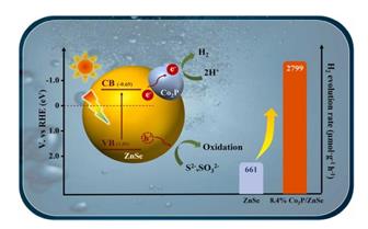 圖形摘要2硒化鋅(ZnSe)由于具有合適的帶隙和優(yōu)越的穩(wěn)定性,近年來已成為可見光驅(qū)動光催化產(chǎn)氫有力的半導(dǎo)體材料。然而,構(gòu)建基于硒化鋅的雜化體系以提高電荷分離和光催化性能仍然具有挑戰(zhàn)性。本文采用一種簡單的原位溶熱法合成了Co2P/ZnSe復(fù)合材料,通過光催化水裂解高效產(chǎn)氫。優(yōu)化后的8.4% Co2P/ZnSe復(fù)合材料產(chǎn)氫速率達到2799 μmol g-1 h-1,比原始硒化鋅高出4.2倍。 Co2P/ZnSe復(fù)合材料的光催化H2反應(yīng)的顯著改善歸因于通過超細Co2P在ZnSe上的原位生長形成了緊密的界面。同時,Co2P可以作為一種有利的助催化劑與ZnSe耦合,促進光生載流子的分離和轉(zhuǎn)移。這項工作為金屬磷化物錨定ZnSe的制備和光催化機理提供了有價值的見解,可進一步推廣到其他太陽能轉(zhuǎn)換系統(tǒng)。WZT新型光催化網(wǎng)_水庫治理_河道治理_水生態(tài)修復(fù)_水環(huán)境治理與修復(fù)_江蘇雙良環(huán)境科技有限公司