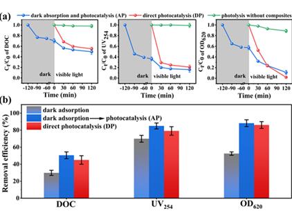 圖2 IOM的去除性能表征Bi2O3/TiO2-PAC(10%)作為吸附和光催化的效果。cTa新型光催化網(wǎng)_水庫治理_河道治理_水生態(tài)修復_水環(huán)境治理與修復_江蘇雙良環(huán)境科技有限公司
