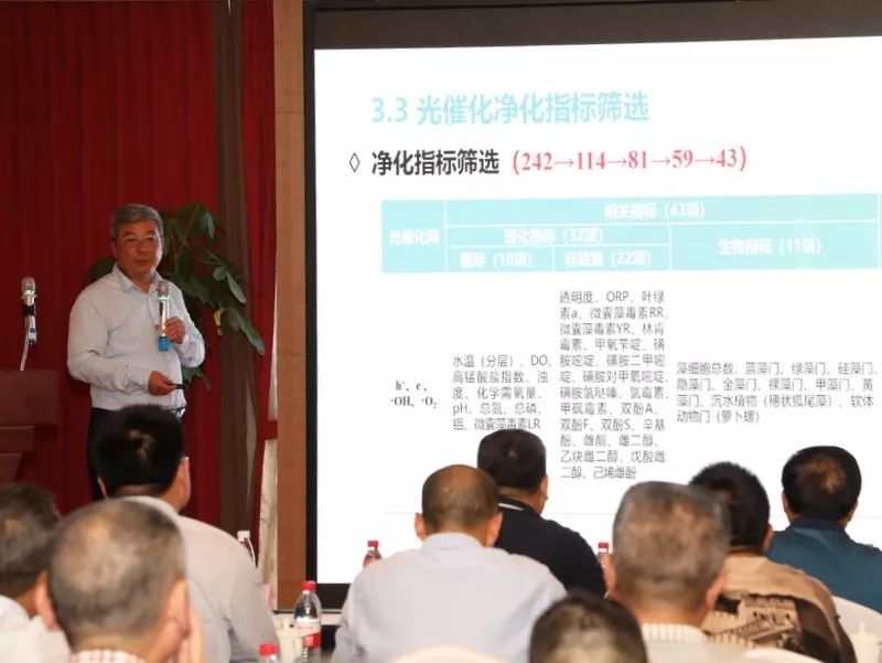 南方國(guó)家工程中心主任、上海城市水資源開(kāi)發(fā)利用國(guó)家工程中心有限公司總經(jīng)理顧玉亮對(duì)光催化技術(shù)提升飲用水源地水質(zhì)工程實(shí)證應(yīng)用情況的介紹。D8l新型光催化網(wǎng)_水庫(kù)治理_河道治理_水生態(tài)修復(fù)_水環(huán)境治理與修復(fù)_江蘇雙良環(huán)境科技有限公司