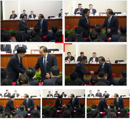 主席臺(tái)領(lǐng)導(dǎo)向受聘人員頒發(fā)聘書曹旭、劉向輝、劉琳、高曉峰、劉向東(從左至右)4rg新型光催化網(wǎng)_水庫(kù)治理_河道治理_水生態(tài)修復(fù)_水環(huán)境治理與修復(fù)_江蘇雙良環(huán)境科技有限公司
